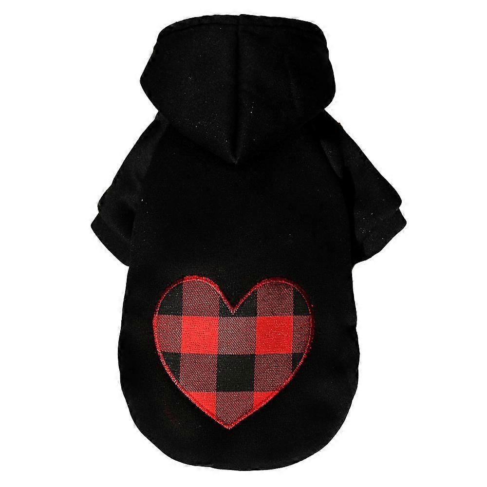 Warm Buffalo Plaid Dog Hoodie with Paw Print and Hat for Pet Apparel
