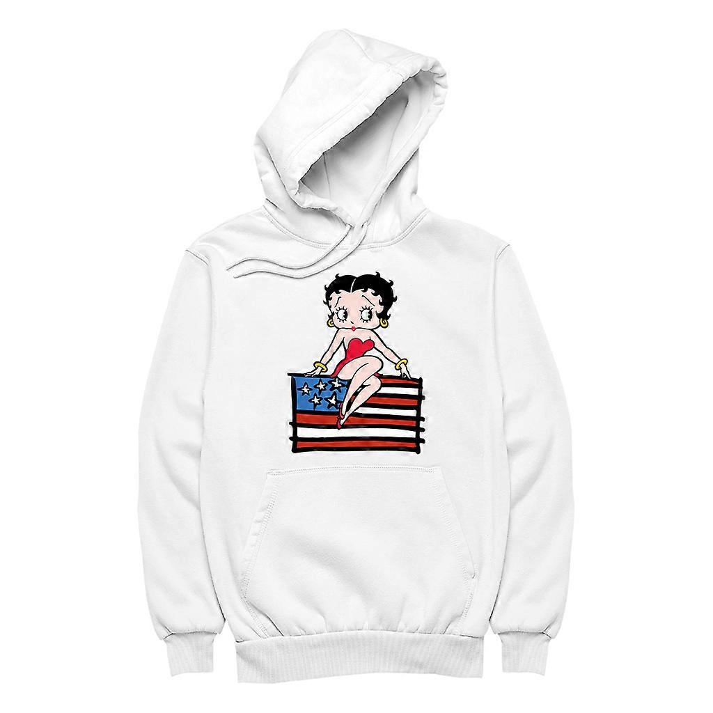 Americana Posing with the Stars & Stripes Flag Women's Hooded Sweatshirt