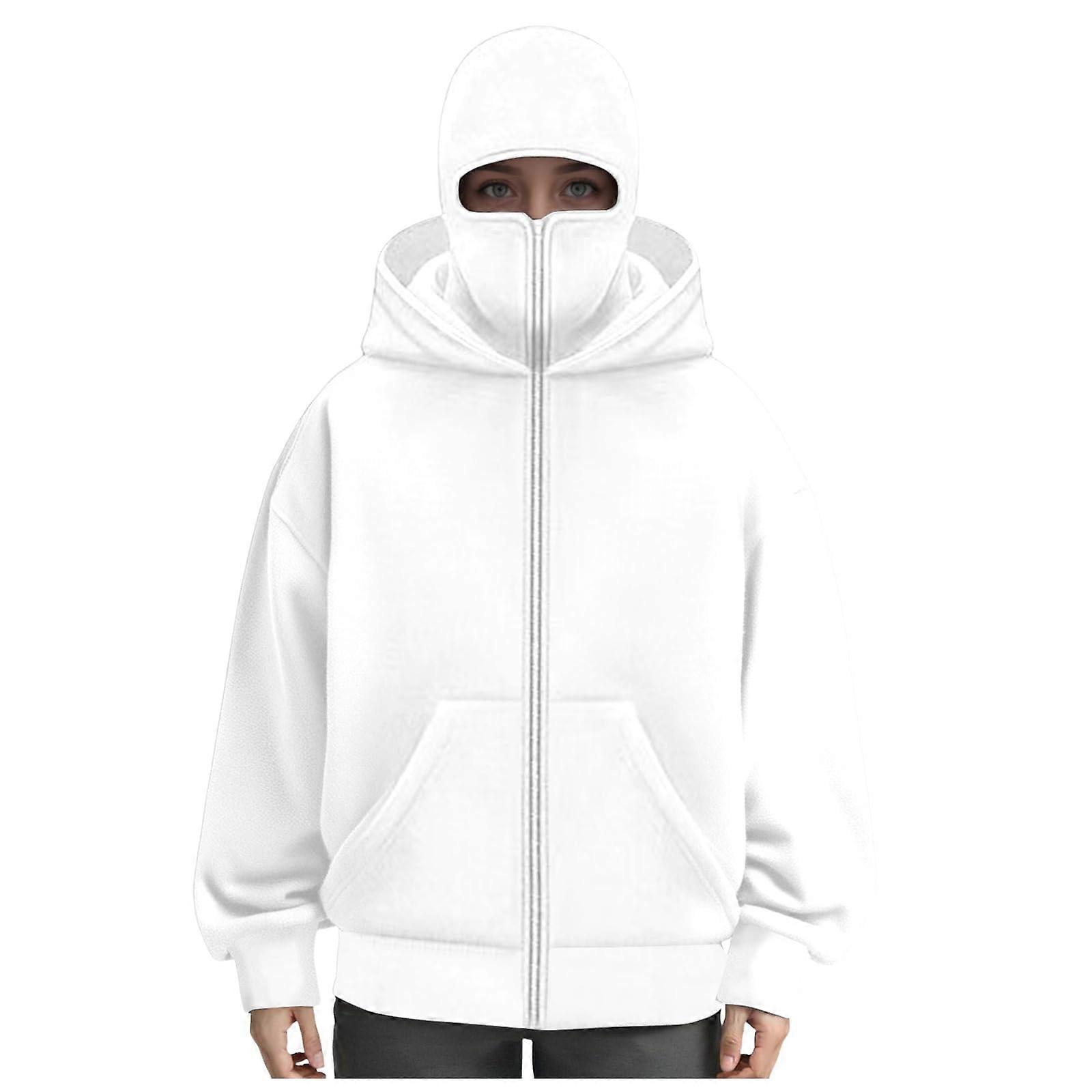 Unisex Women's Full Zip Hooded Casual Double Hood Long Sleeve Warm Sportswear Hooded Sweatshirt White XL