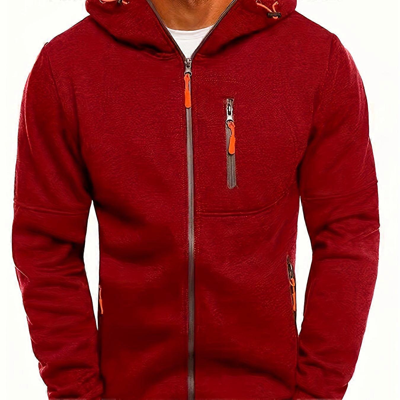 Men's Casual Zip Up Hoodie With Zipper Pockets For Spring Fall Fitness Running