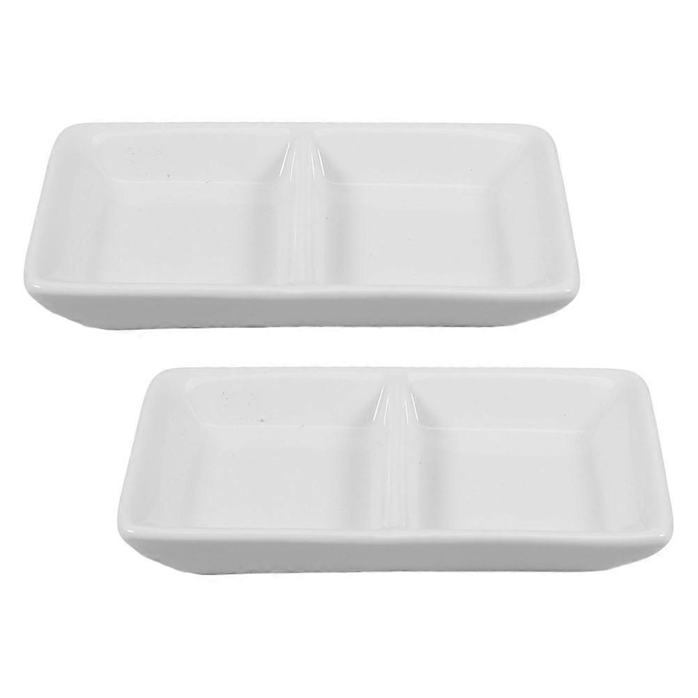 Ceramic Sauce Dish for Bbq and Snack Serving with 2 Compartments 10Pcs