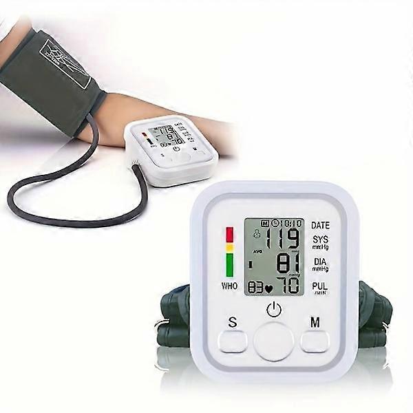 Upper arm blood pressure monitor with memory functions, white