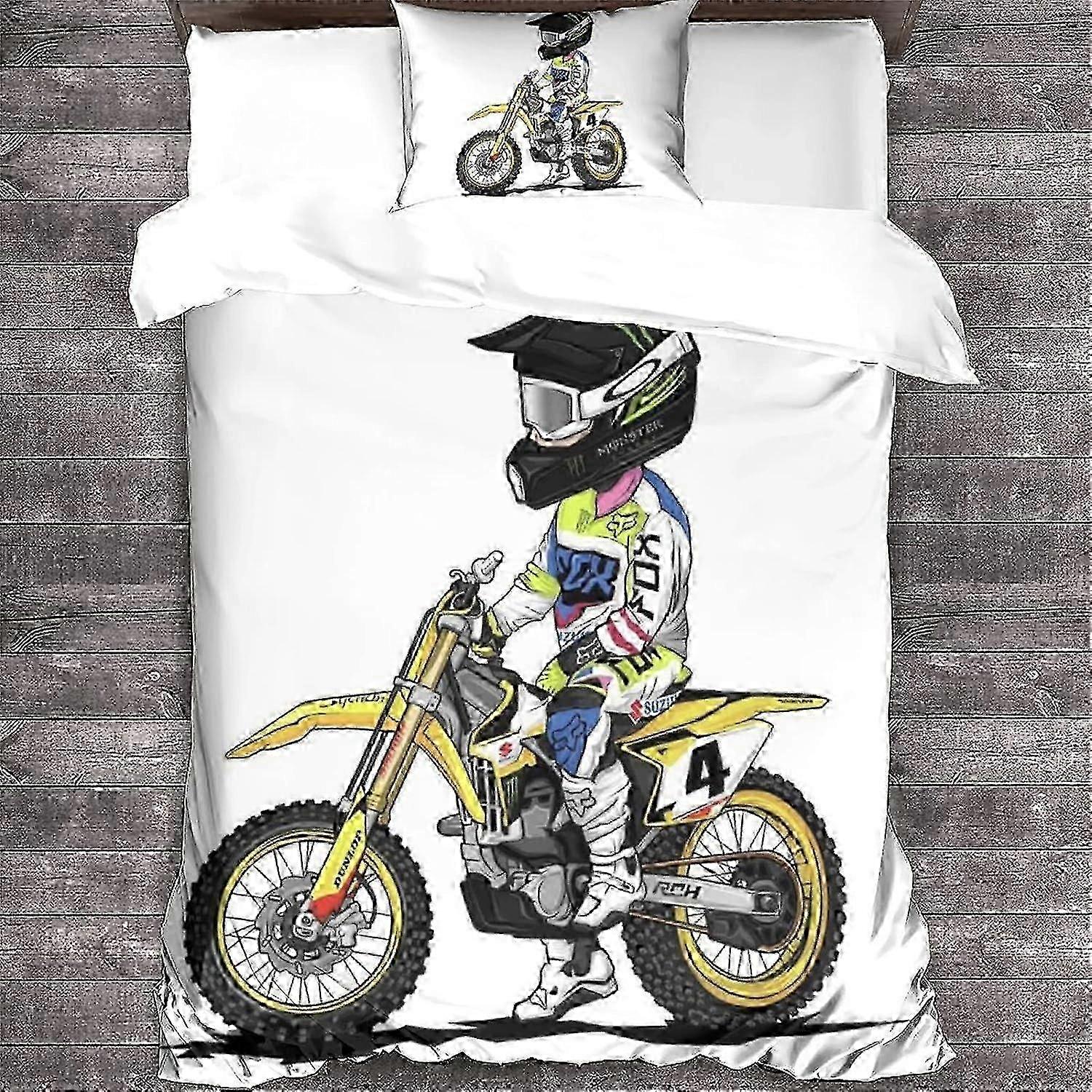 Motogp Duvet Cover and Pillowcases Motocross Motocycle and Printing Soft Microfiber Polyester Duvet Cover with Pillowcases,Single 135*200 CM