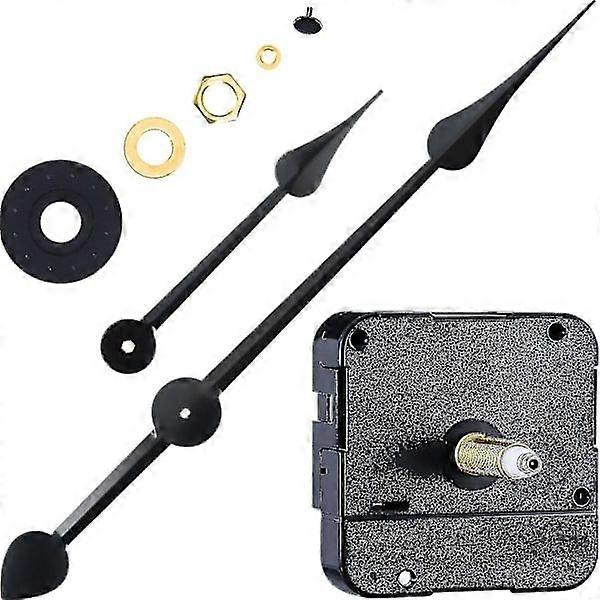 Quartz movement: high torque, jumping second hand, drives long watch hands (10 mm to 450 mm) Movement size: the total shaft length is 23 mm (9/10 inch), the thread length is 15.2 mm (3/5 inch), suitable for watch panels with a thickness of 9 - 13 mm (9/25 - 1/2 inch) From the center hole to the tip of the hand: the hour hand is approx. 115 mm (4.5 inches); the minute hand is approx. 175 mm (7.0 inches); the second hand cap is approx. 7mm (0.3 inch) Packaging Details: includes hardware and 2 clock hands in a carton with instructions, making your DIY clock project easy Warm Notice: when installing it, please keep the hour hand and minute hand parallel to avoid bending