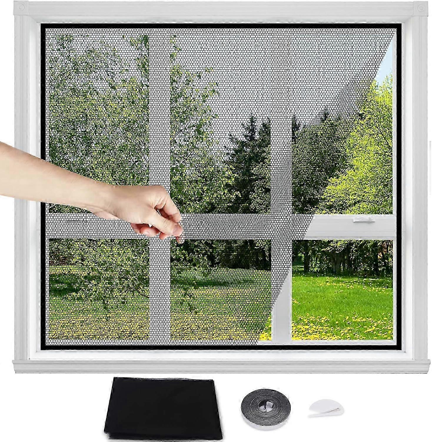 Moustiquaire Fentre - Rglable en Taille - Ne Ncessitant Aucun Perage - Livre Avec un Rubans Adhsifs Solide et un Outil de Coupe (1, Noir)