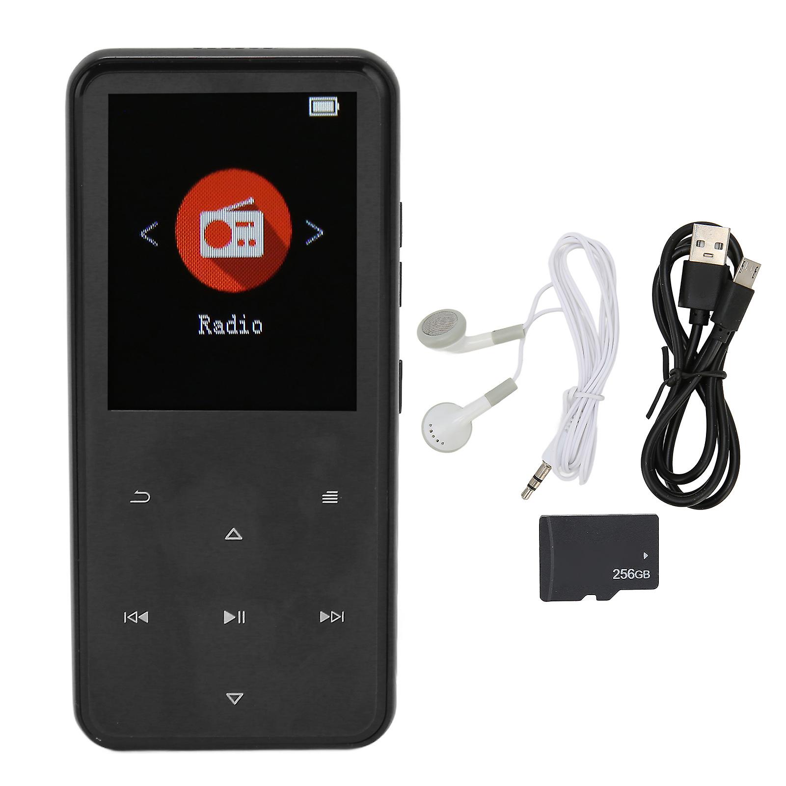 MP3 Player 2.4 Inch Smart HD Noise Reduction Touch Button FM Radio 16GB Bluetooth 5.0 Music Player with Memory Card Black