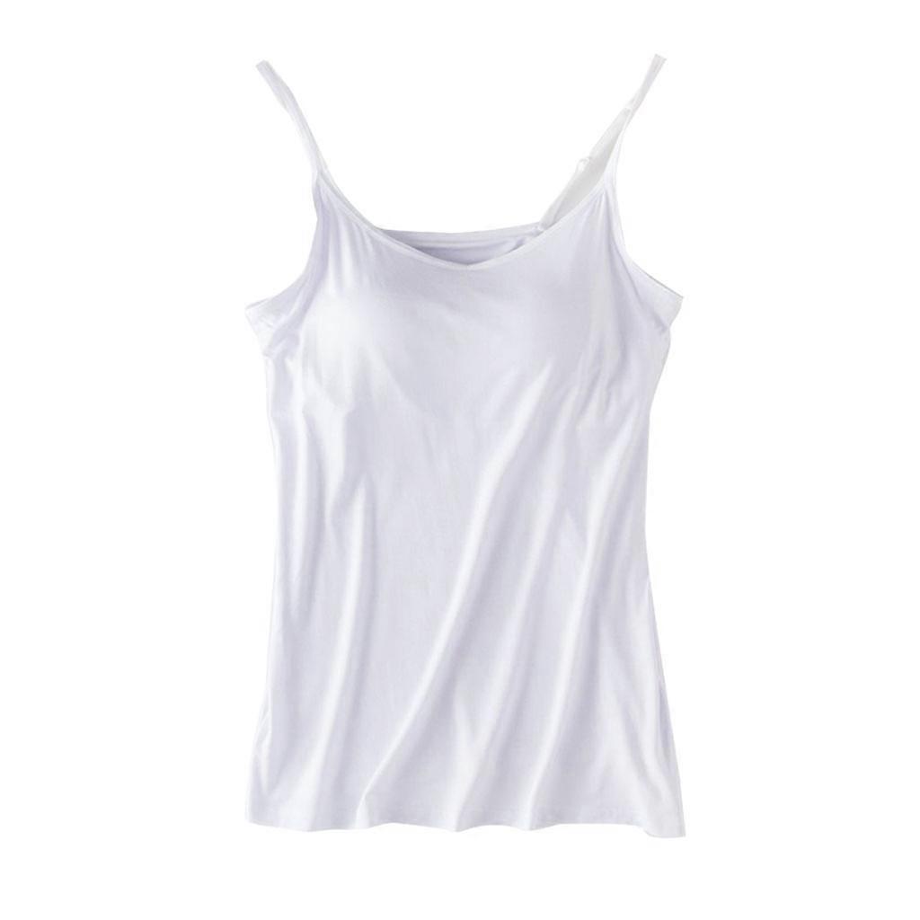 Women Adjustable Spaghetti Strap for Tank Top with Built in Bra Solid Color Padded Camisole Sleeveless Wireless Vest Blo White XL