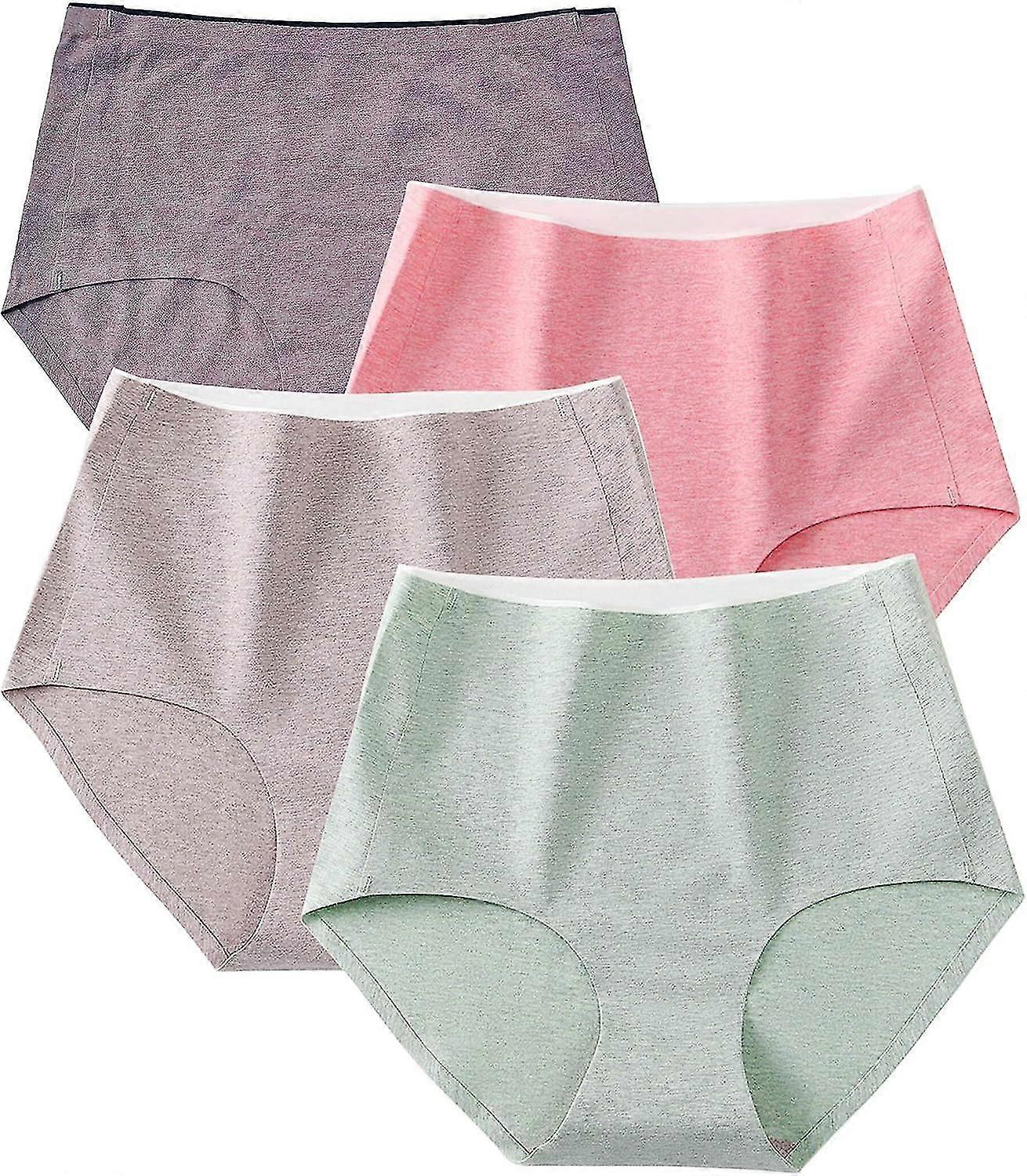 Womens Cotton Underwear High Waisted Briefs Ladies Seamless Full Coverage Panties 4 Pack
