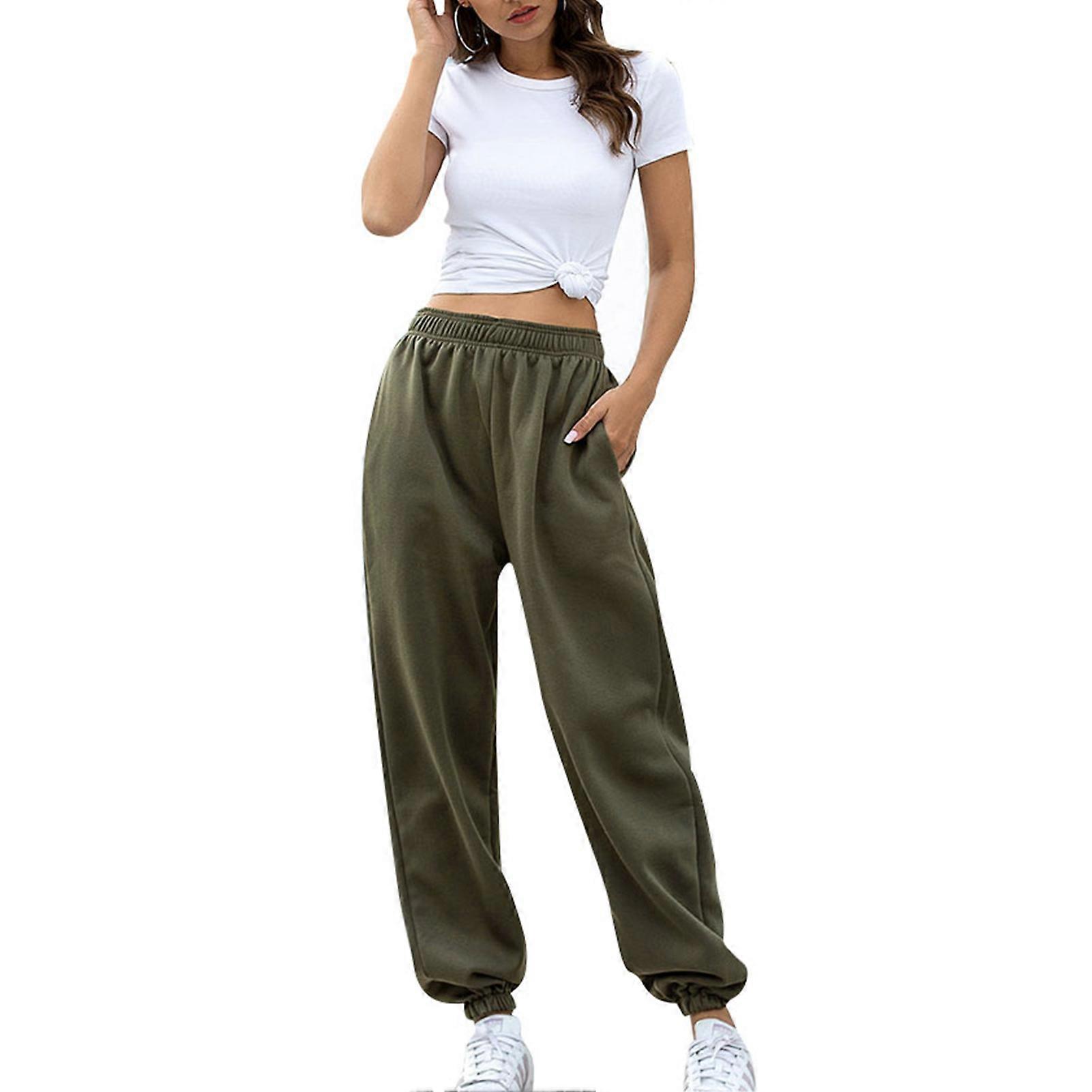 Women Long Pants Elastic Waist Pure Color Ankle Banded Design Extra Fluff Adding Fashion Female Trouser OD Green M