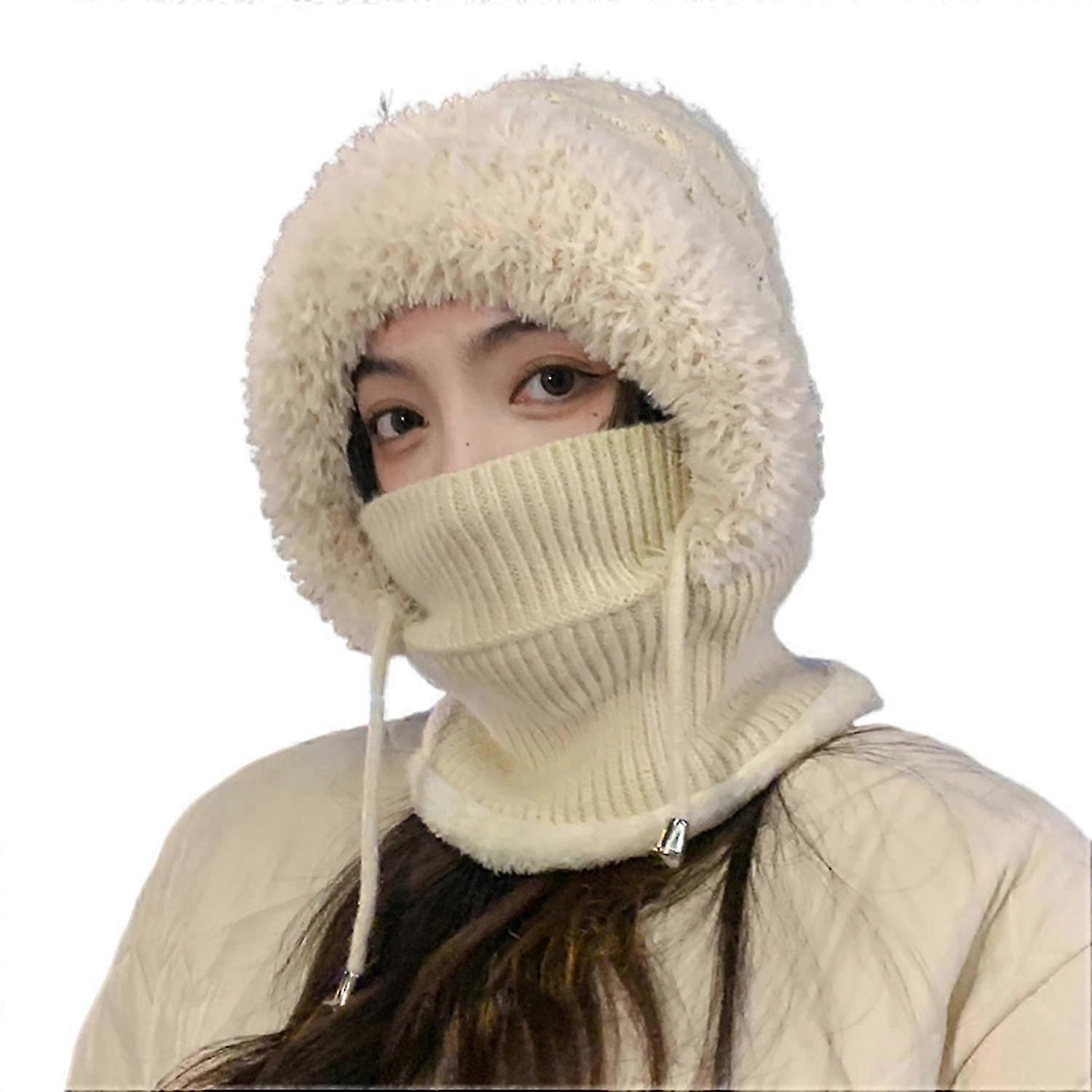Women Winter Hat with Integrated Scarf And Face Shield Thick Warm Windproof Cycling Beanie