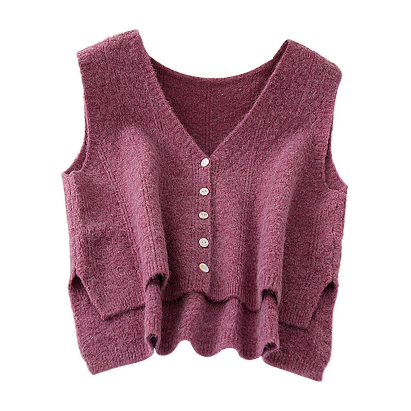 Women Sweater Vest Breathable V Neck Casual Fashion Jumpers Sleeveless Gilet Grape Purple
