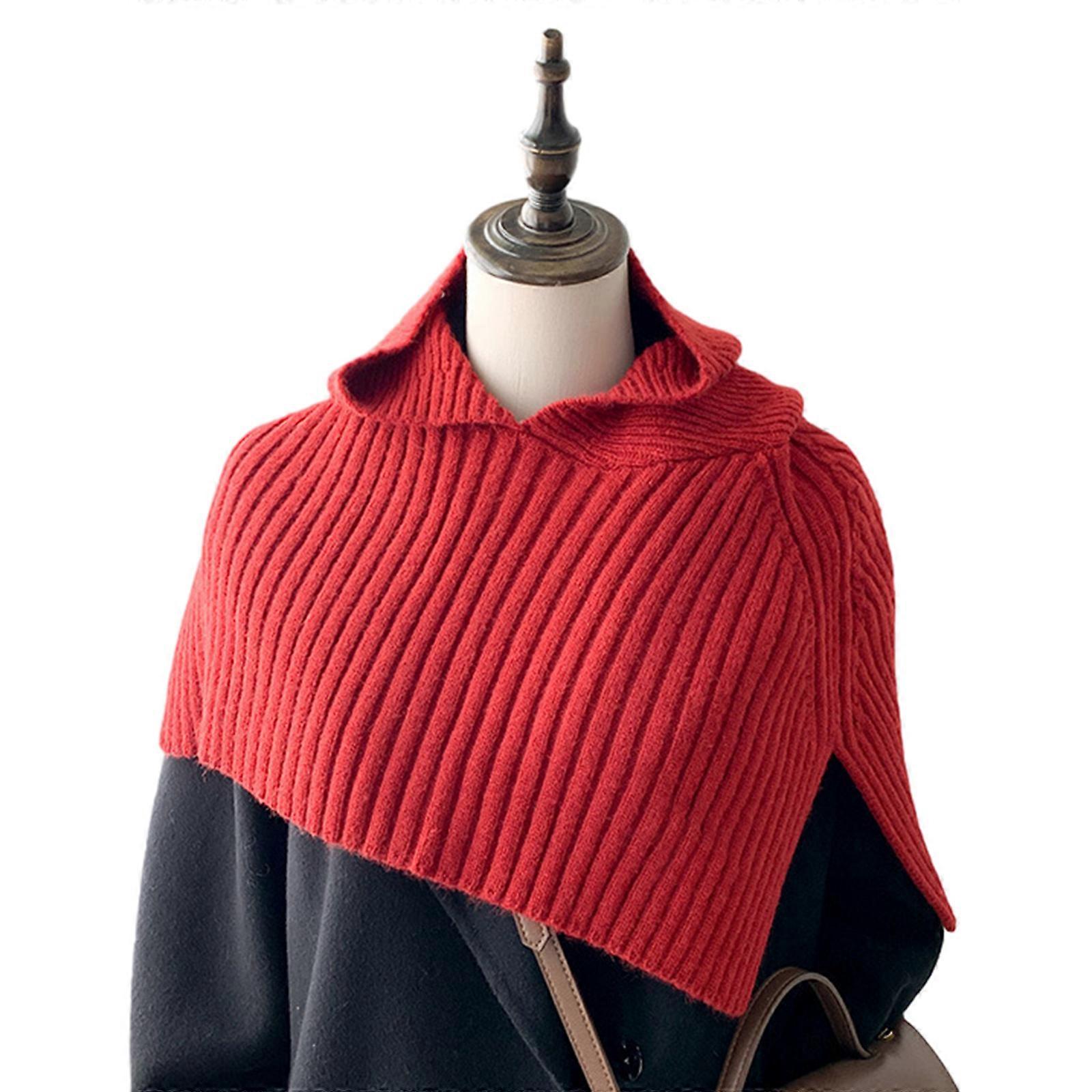 Women Hooded Scarf Solid Color Crochet Shawl Hat for Skiing Hiking Universal Lady Windproof Cape Hat for Cold Weather Red