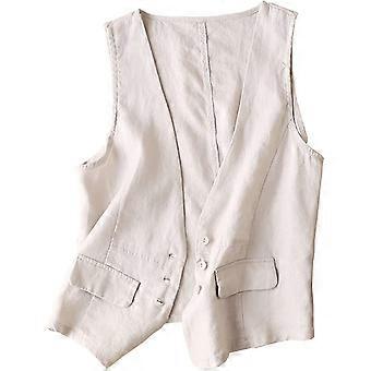 Mulheres de algodão linho colete casual solto V pescoço sem mangas jaqueta