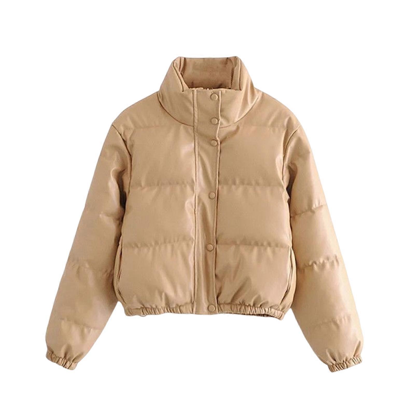 Women Standing Collar PU Jacket Autumn and Winter Solid Color Jacket for Women Formal Daily Party Ball
