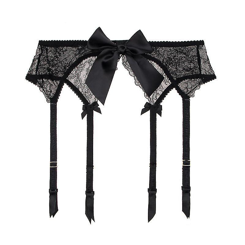 Women Floral Lace Garter Mesh Suspender Set With 4 Straps