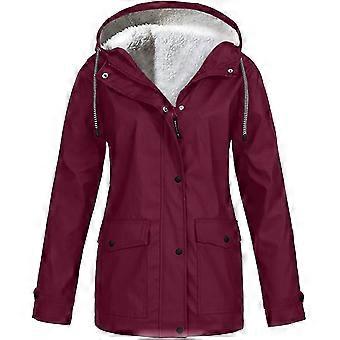 Women's Lined Fleece Rain Jacket Winter Outdoor Waterproof Hooded Raincoat Ladies Snow Warm Ski Jackets Solid Color,hw