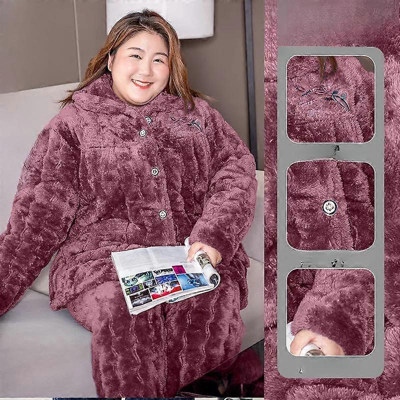Fat Women Coral Fleece Pajamas Suit Winter 110kg Plus Size Three-layer Quilted Jacket Suit Plus Velvet Thickened Home Service