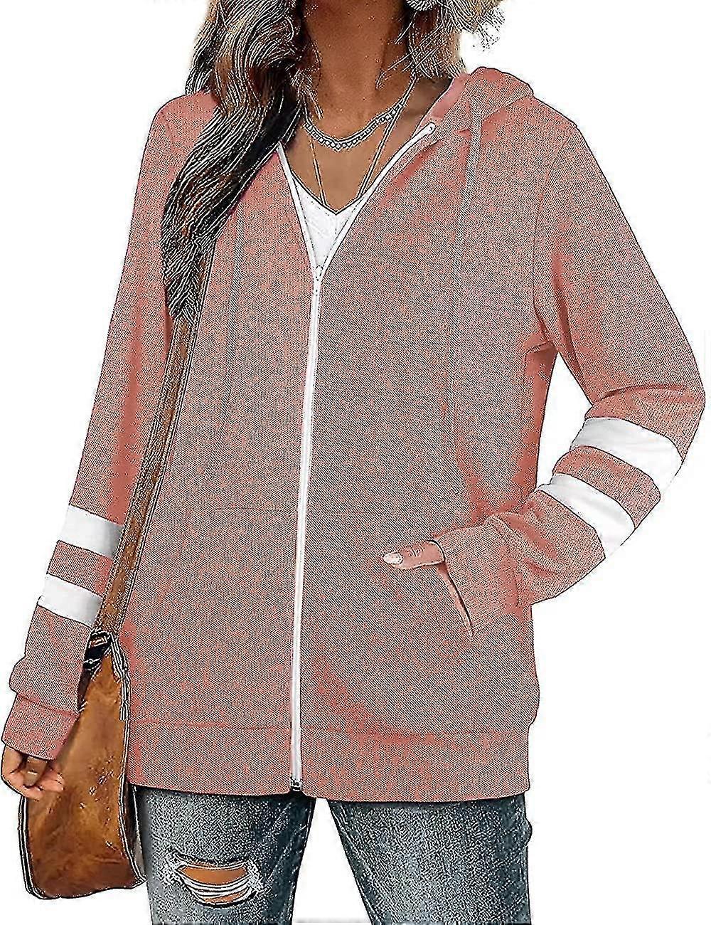 Womens Striped Long Sleeve Hooded Sweatshirts Jacket Cardigan With Pockets Superb