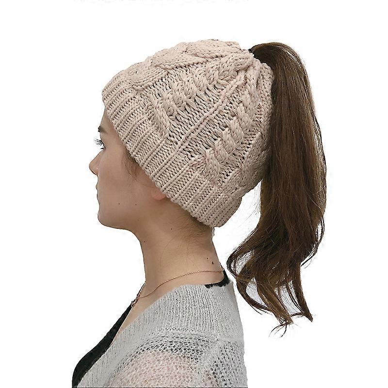 Women Knit Stretch Beanie Messy High Bun Winter Ponytail Beanie Hats Caps