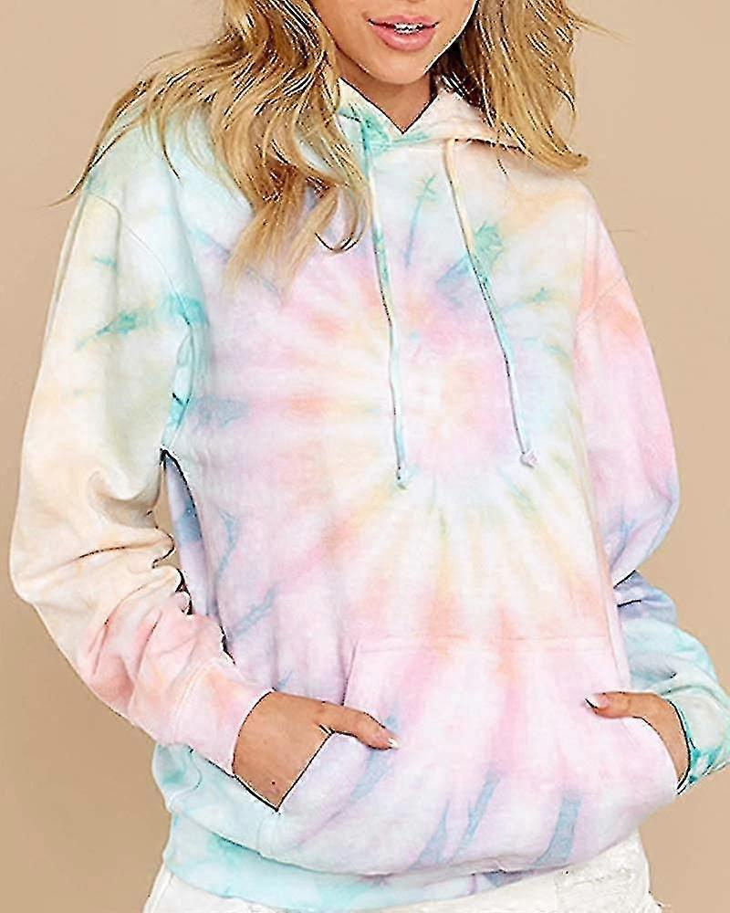women hoodie sweatshirt tie dye pullover long sleeve loose drawstring top with pocket