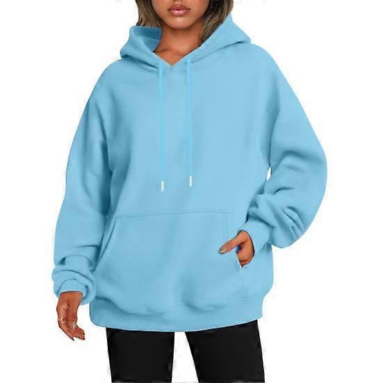 Women Fall Winter Hoodie Thick Hooded Long Sleeves with Big Pocket Plus Size Mid Length Solid Color Loose Elastic Cuffs Drawstring Sport Top