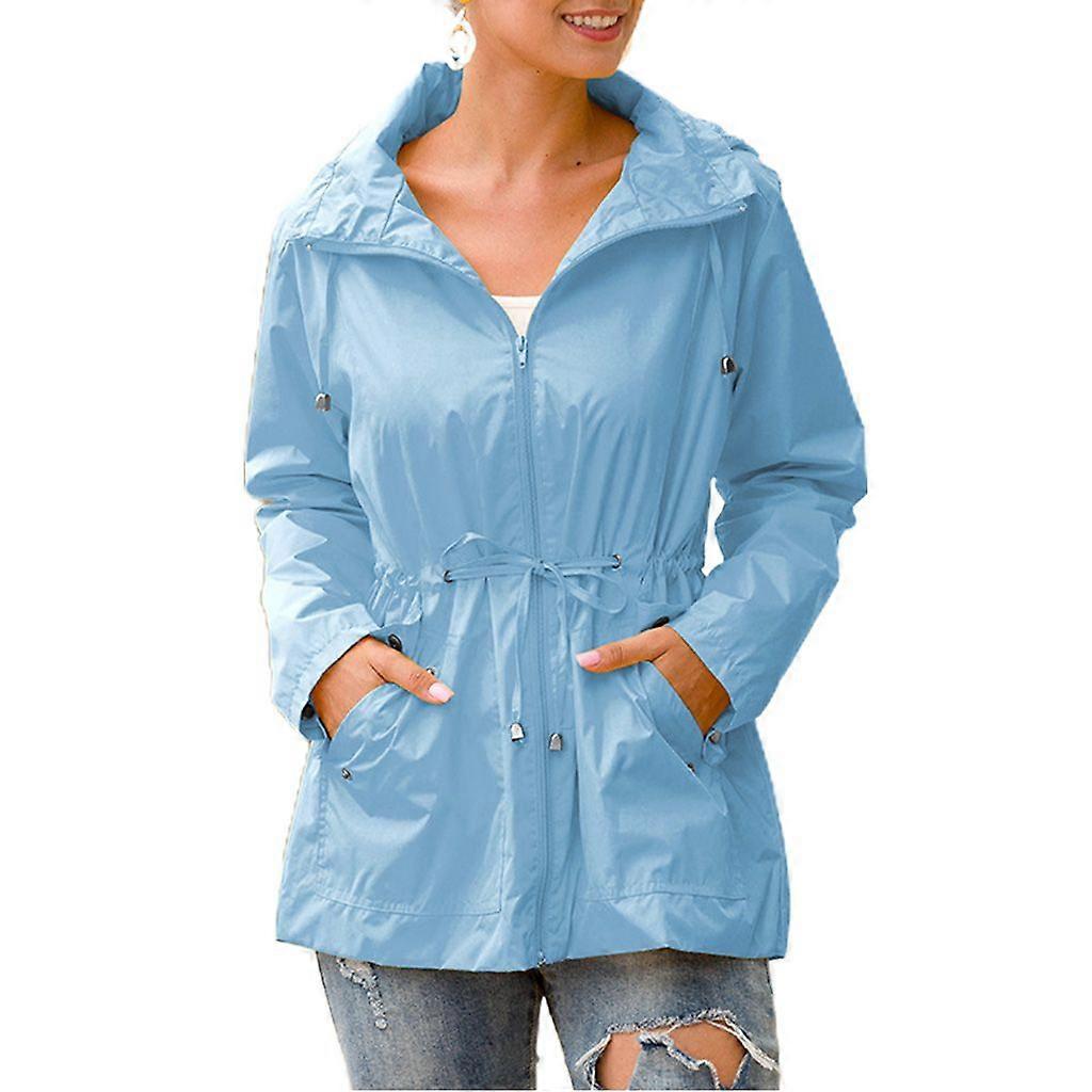 Women Plus Size Autumn Waterproof Hooded for Jacket Long Sleeve Drawstring Zipper Rain Coat Casual Outdoor Windbreaker S-3XL