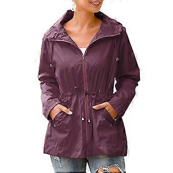 Womens Plus Size Autumn Waterproof Hooded for Jacket Long Sleeve Drawstring Zipper Rain Coat Casual Outdoor Hiking Windbreaker S-3XL