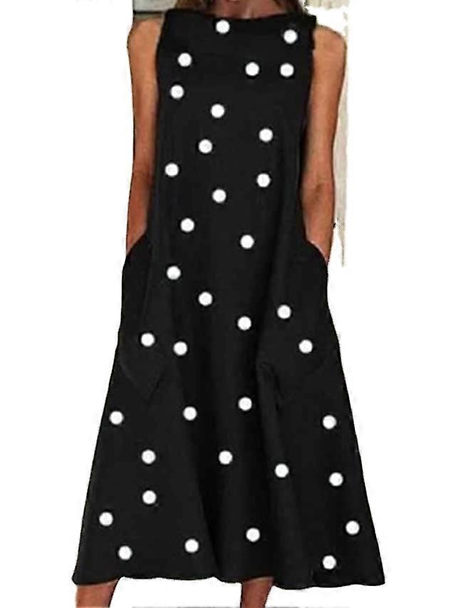 Women's Sleeveless Polka Dot Print Crew Neck Dress With Pocket