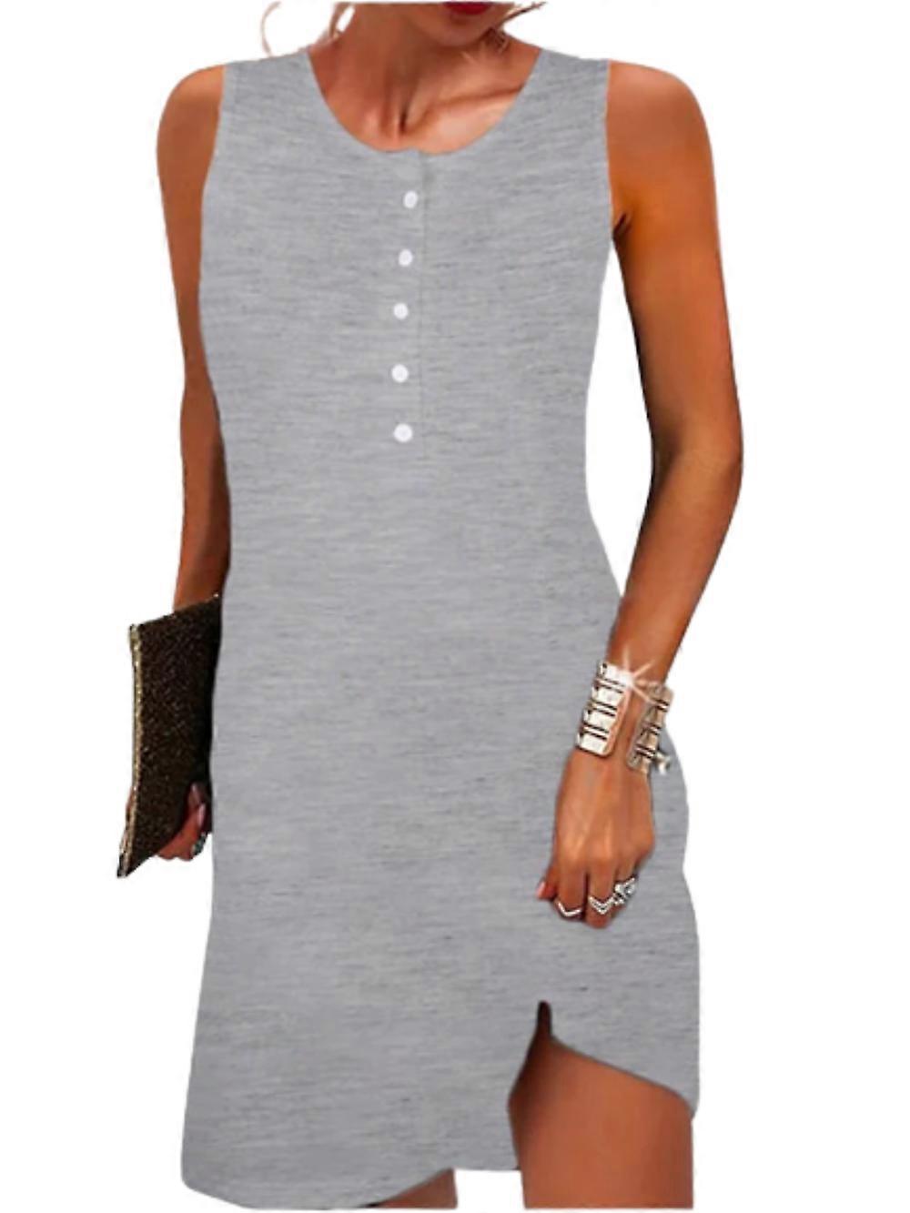 Women's Sleeveless Pure Color Button Round Neck Simple Split Design Dress