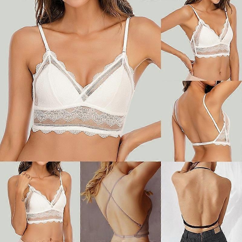 Sexy Women V Neck Lace Bra Deep U Backless Bralette Triangular Transparent Bras Tank Tops