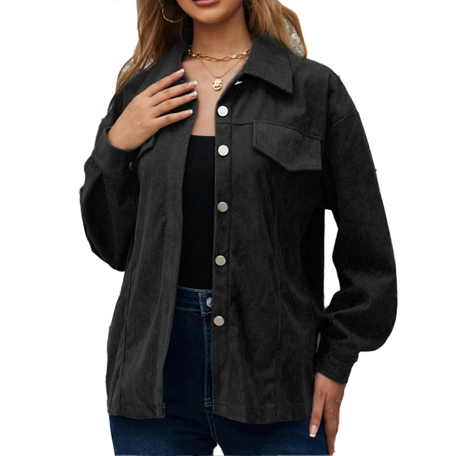 Women Shacket Single Breasted Plain Color Turn Down Collar Long Sleeve Shirt Jacket for Autumn Spring