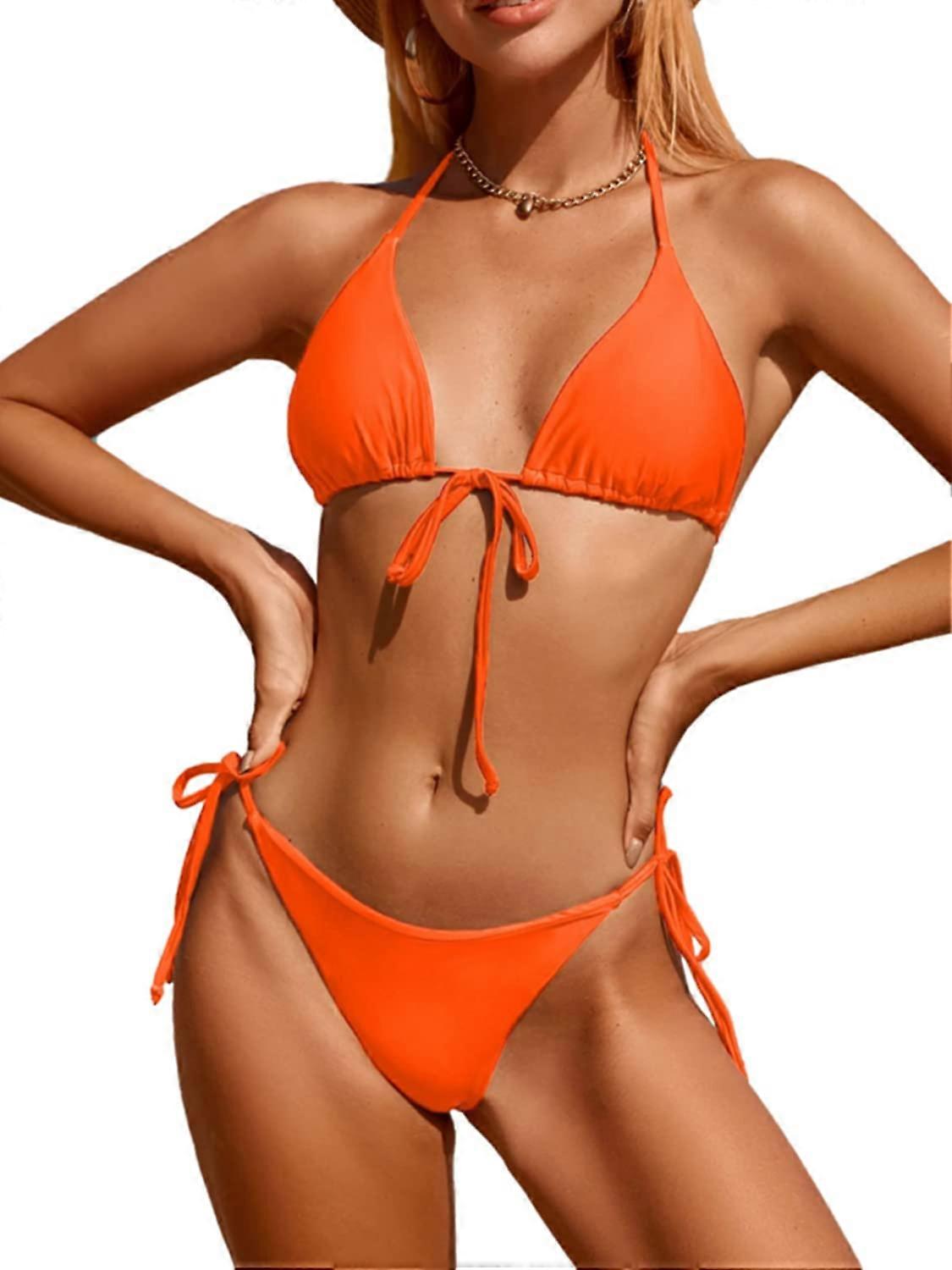 Women Solid Halter String Bikini Set Triangle Sexy Thong Two Piece Swimsuit