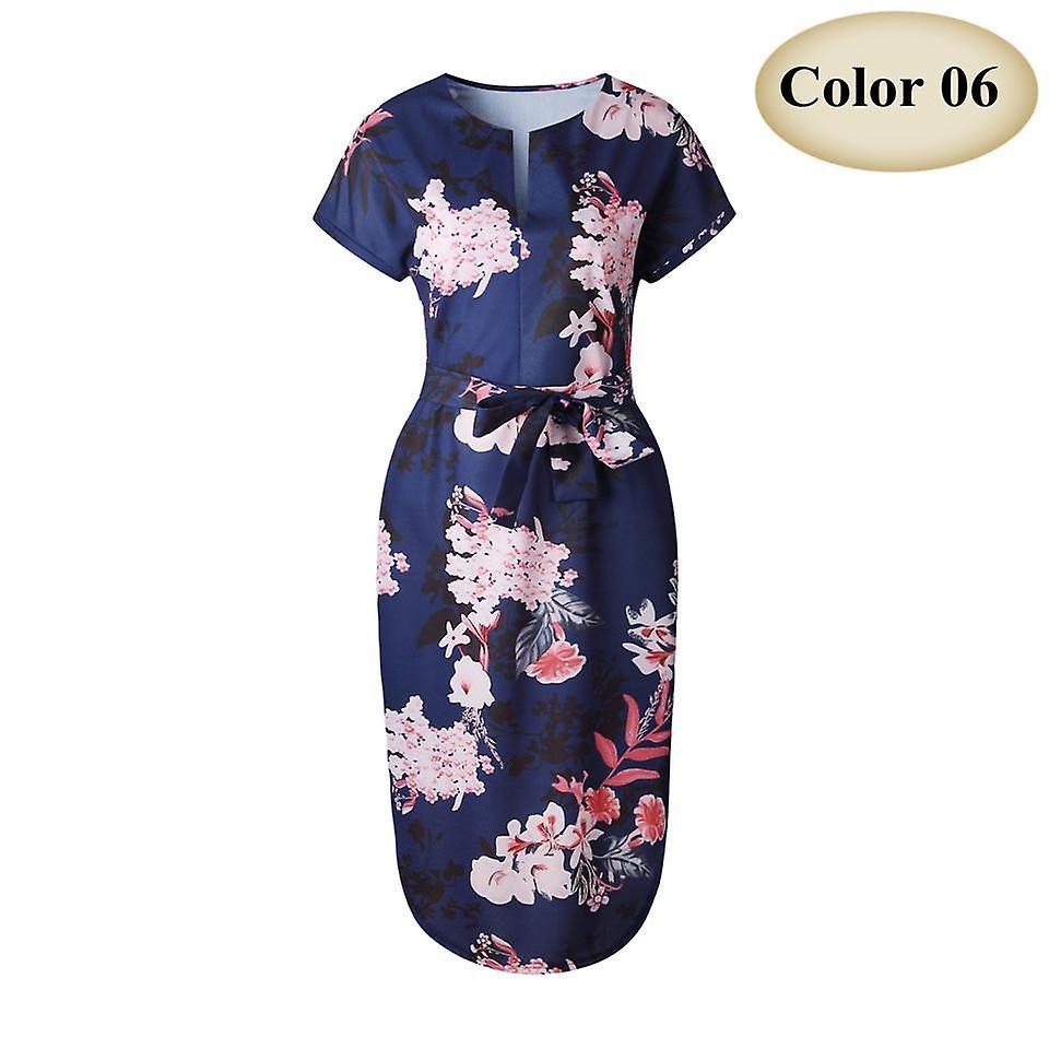 Women Summer Boho Style Geometric Print Beach Dress Elegant Party With Belt