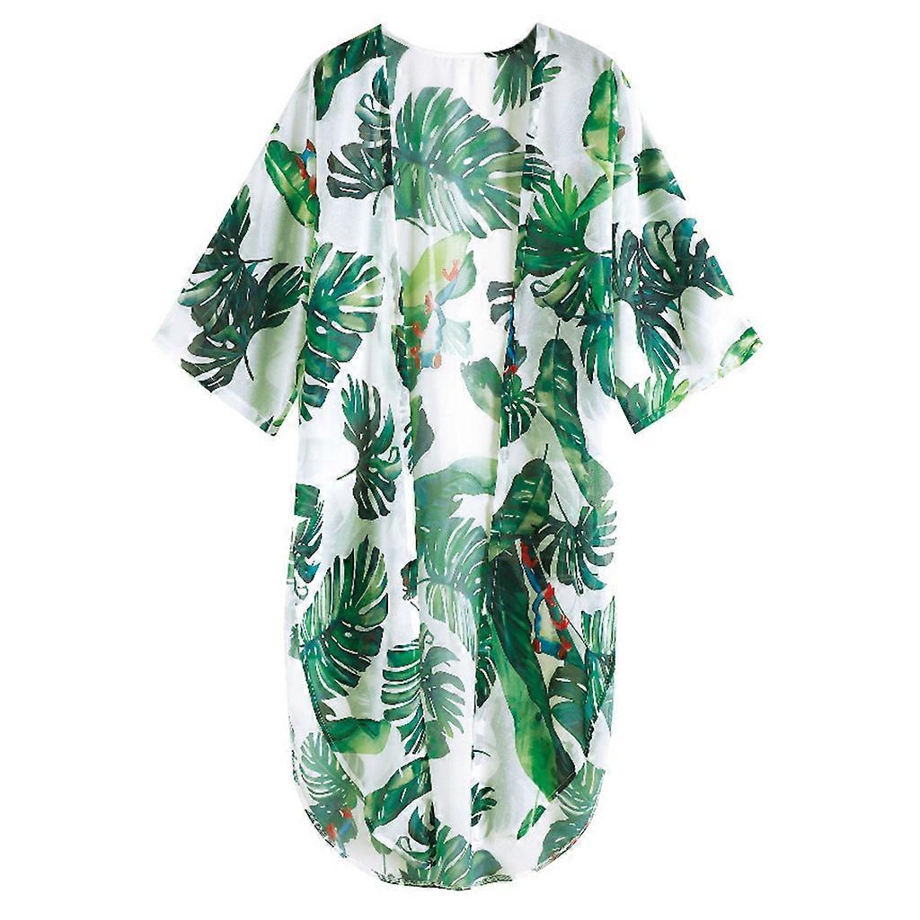 Women Summer Boho Flowy Kimono Cardigan Leaves Zebra Snakeskin 3D Print Bikini Swimsuit Cover Up Open Front Chiffon Beach Dress 1 S