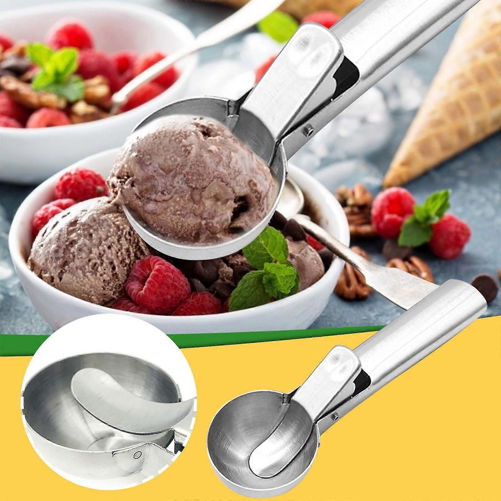 Multifunctional 304Stainless Steel Ice Cream Scoop Ice Cream Scoop Fruit Scoop Features: The handling part of the new design is designed for easy grip. With a specially designed heat conduction, you can enjoy stainless steel at the correct temperature. There is a pre hole for easy hanging back completion. Widely used: it is notonly a metal ice cream spoon, but also a good spoon for digging melons and other fruit, filling pepper, making small cakes, biscuits, dough, muffins, pancakes, butter, Rice-meat dumplings, etc. Explanation: The ice cream spoon on the of the ball spoon has a push-button, which is specifically used to make a perfect round spoon, and pressing the push-button without persistence can easily become popular without persistence to the spoon. Convenient cleaning: Does not adhere to surface usage. You can wash it with tap water or with a stainless steel ice cream spoon on the top of a dishwasher that easily Cleaned Ideal for use at home, in a restaurant or an ice cream parlour. Product Description: 1Ice Cream Scoop Color: Stainless steel color () Spoon Length: Approx 19 cm/5inch Material: Stainless steel Can be cleaned by water and keep as bright as when new. Spoon Ball Diameter: 5cm/2inch Made of stainless steel. 100% new and. Ideal for use at home, in a restaurant or an ice cream parlour. Natural and,, tasteless and non corrosive