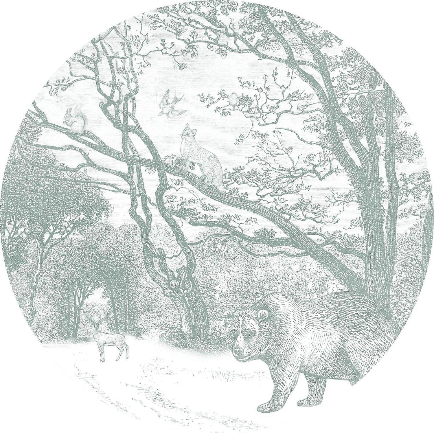 ESTAhome self-adhesive round wall mural forest with forest animals green - Ø 70 cm - 159071