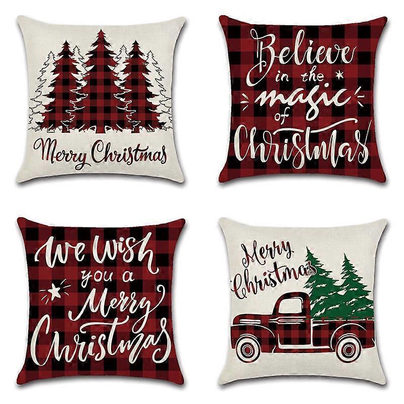 Christmas Design Cushion Covers Set of 4 Throw Pillow Case for Sofa Xmas Room Decorations Cover 18 x 18 Cotton Linen Red