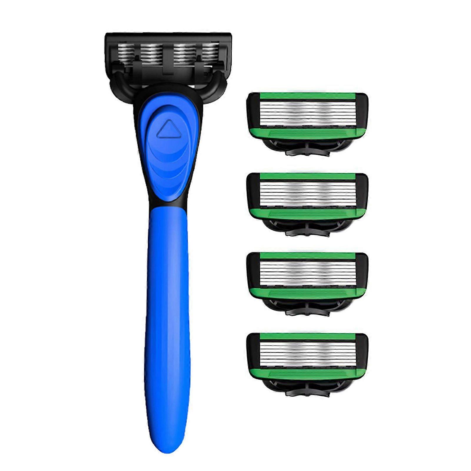 Manual Razor with 5 Blade Refills 7 Layers Stainless Steel Blade Rubber Handle Men Women Hair Beard Trimmer Remover Shaver Tool