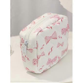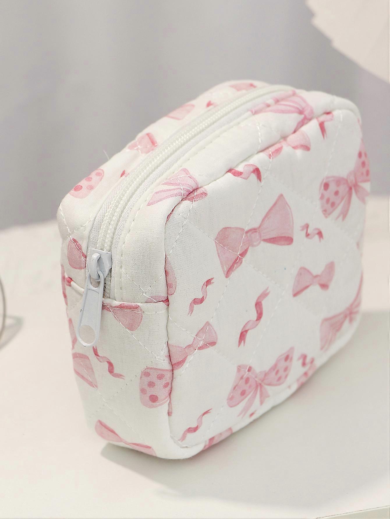 1pc bow quilted cosmetic bag, daily makeup tool storage bag, cute mini makeup bag, fashionable portable makeup bag