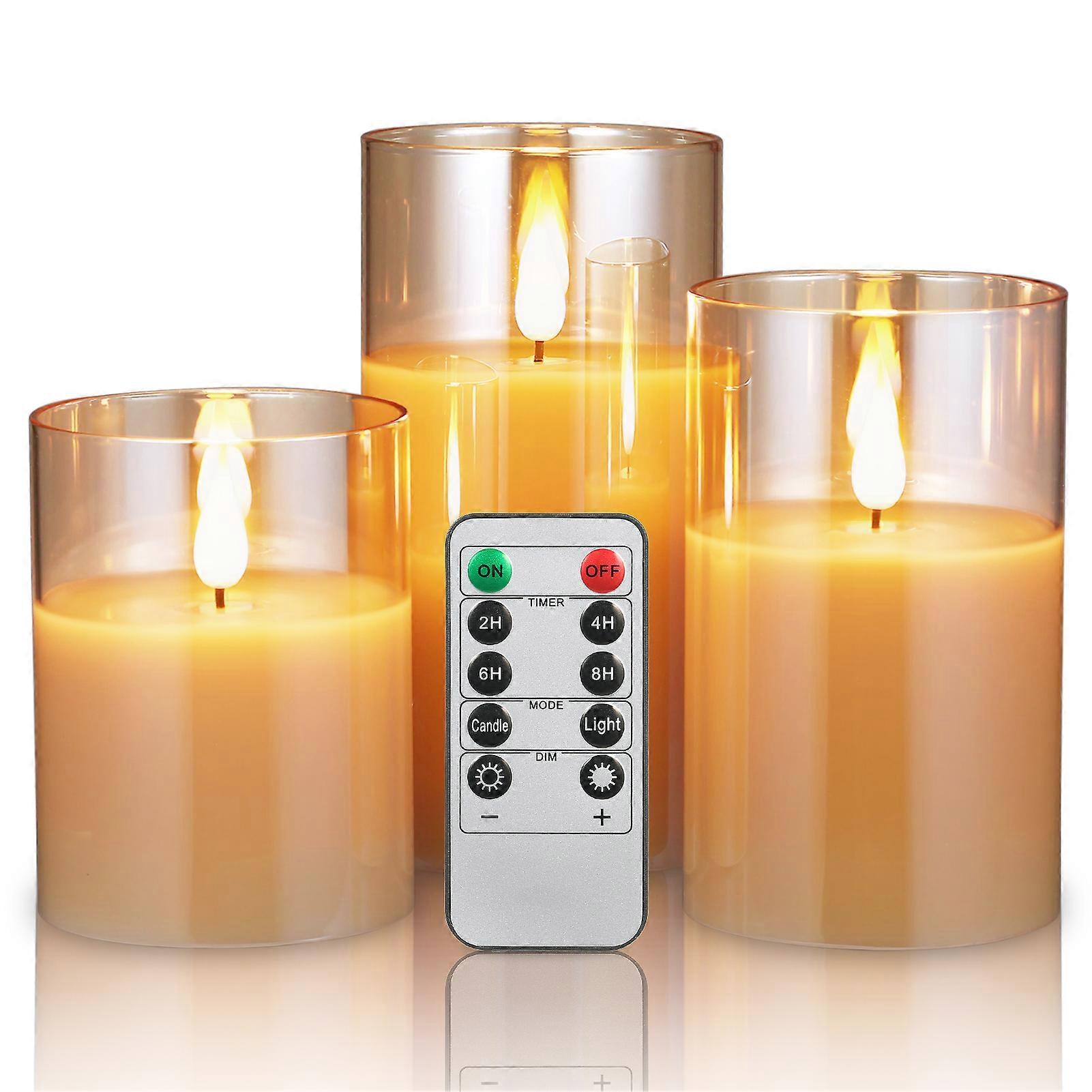 Neoglint 3pcs Flickering Flameless Candles Set, 3.9-5.9in Tawny