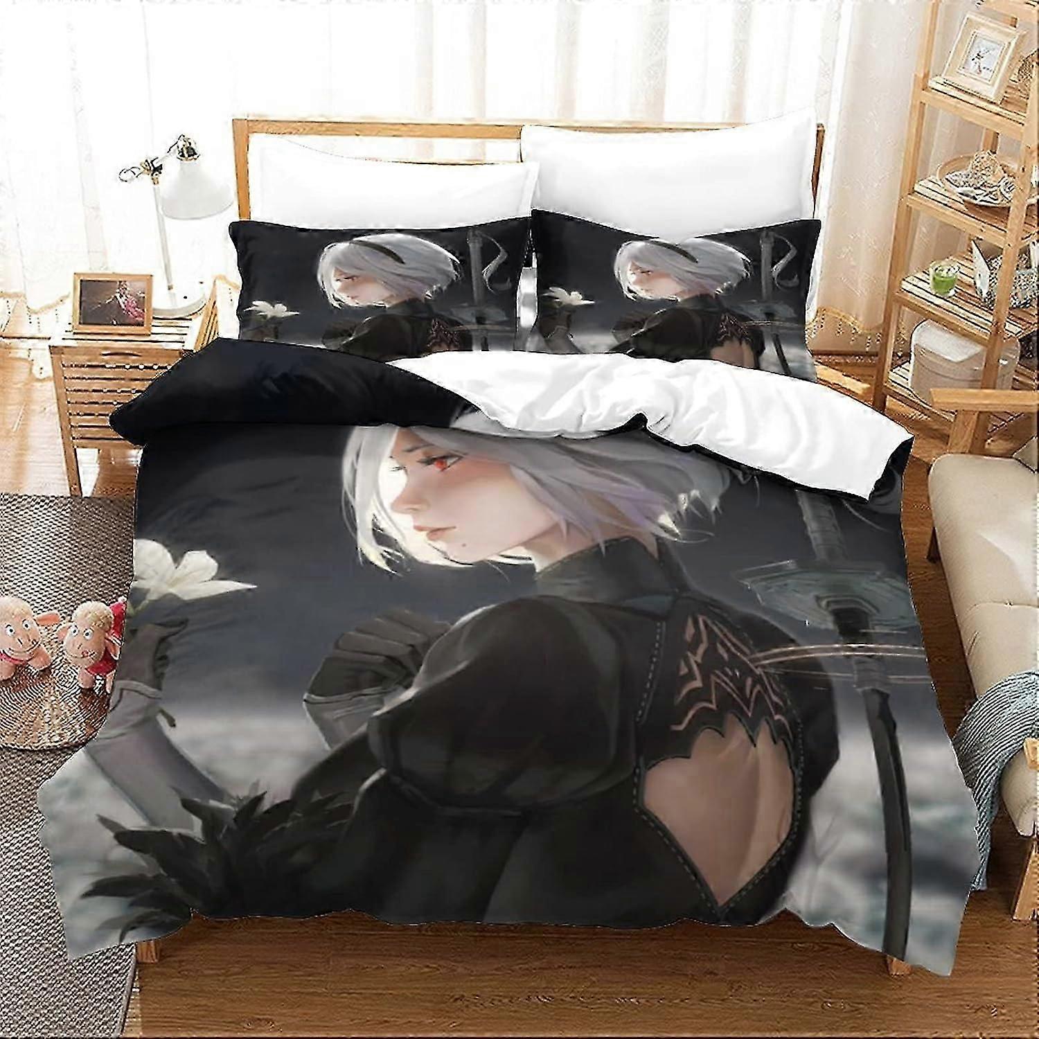 Nier Automata Game Duvet Cover - Yorha No Type B Pattern D Bedding Set with Zipper - % Microfiber Children's Duvet Cover Sets with Pillowcase 135*200