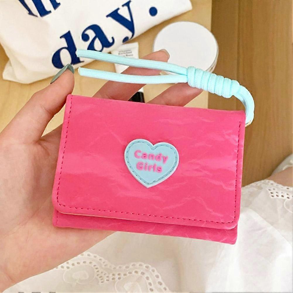 New Tri-fold Coin Purse Zipper Lanyard Mini Wallets Heart Portable Coin Pouch