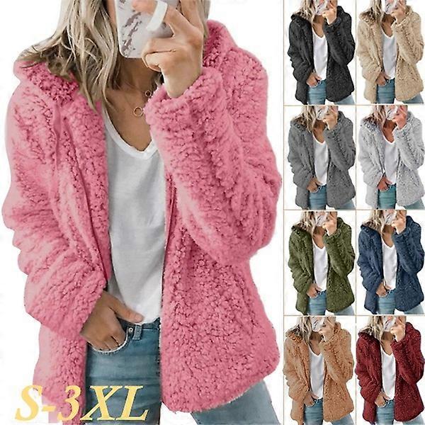 New Fashion Women Fluffy Cardigan Sweaters Hooded Woolen Fleece Jacket forAutumn and Winter Long Sleeve Hooded Cardigan Coat S-3XL