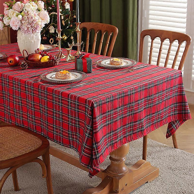 New Christmas tablecloth holiday decoration party green plaid cotton and linen tablecloth rectangular home living room tablecloth red plaid 90*90