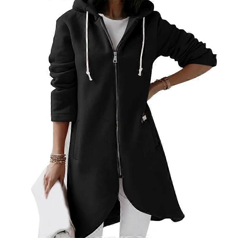 New Women's Wool Coat Autumn Long Hooded Jacket Fashion Zipper Design Long Sleeve Jacket Solid Color Simple Full Set Sweatshirt