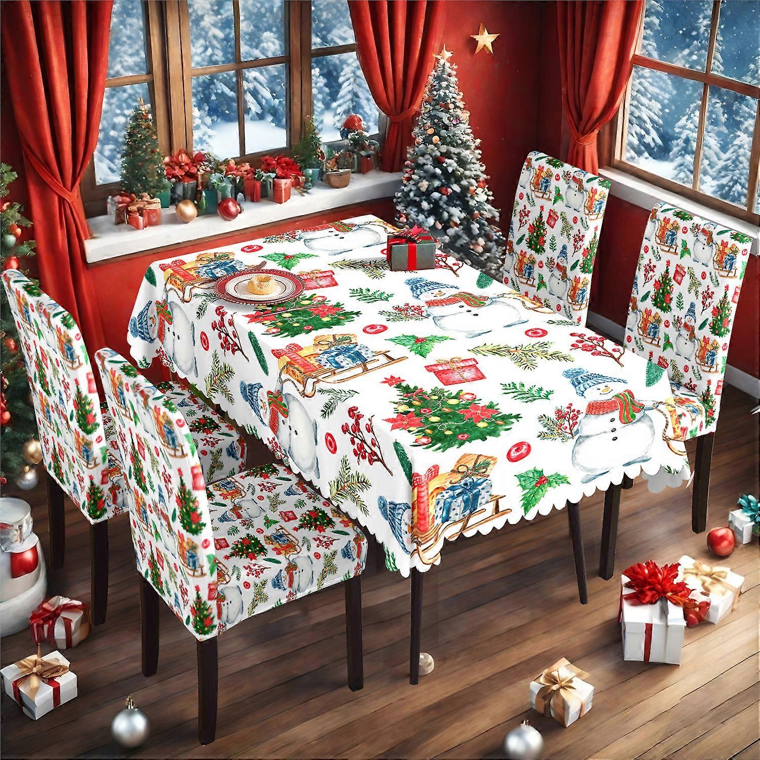 New Christmas tablecloth and chair cover all-inclusive milk silk Christmas waterproof printed tablecloth set TC-240 set (140*210cm waterproof