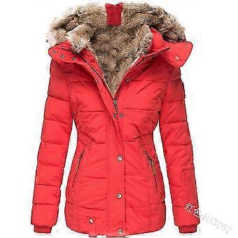 Novo inverno quente gola de pele jaqueta de algodão zíper das mulheres manga comprida slim fit jaqueta de algodão com capuz w128