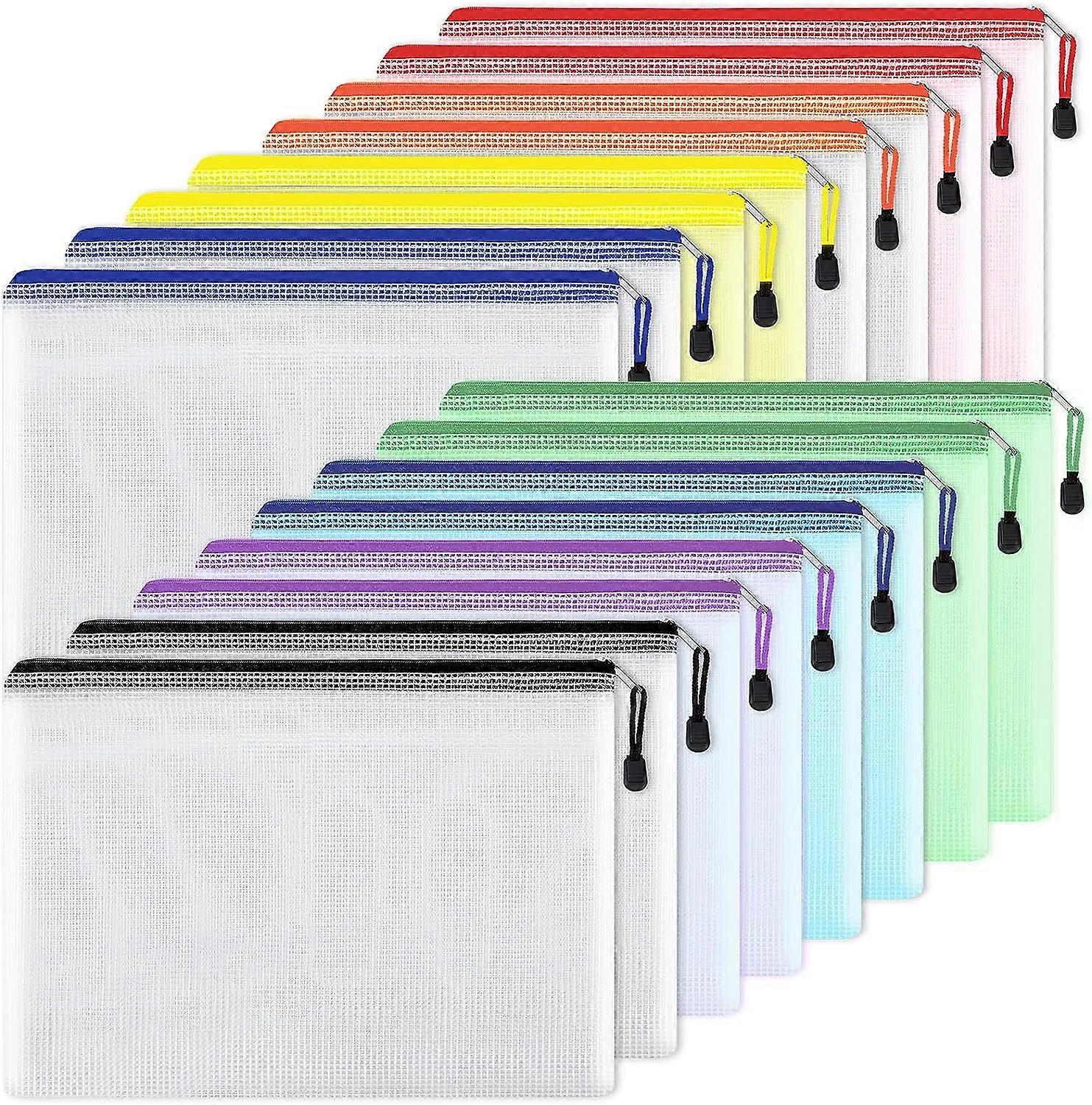 New product,16pcs Mesh Zipper Pocket Document Bag, Zipper Pocket, Waterproof Zipper Document Bag, A4 Size, Office Supplies
