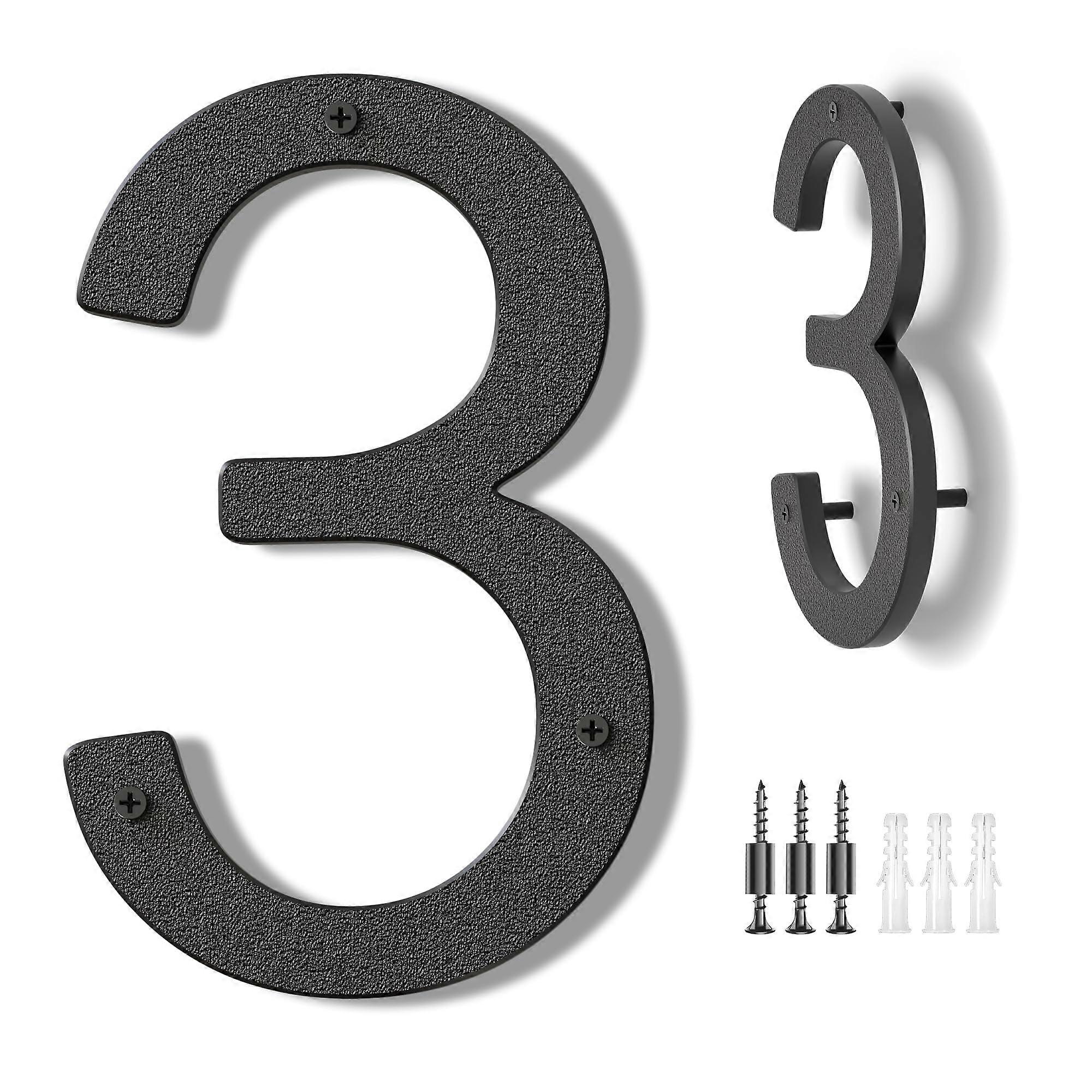10Inch Modern Floating House Numbers – Durable, Stylish, and Easy to Read Enhance the curb appeal of your home with these 10inch tall, 0.39inch thick modern house numbers. Designed for visibility and style, they provide a clear, bold display that is easily readable from the street, making it simple for guests, delivery drivers, or emergency services to locate your home quickly. Key Features and Benefits: • Large and Visible – The 10inch height ensures numbers are easy to spot from a distance, improving address recognition and adding a professional, polished appearance to your exterior. • Floating or Flat Mount – Includes spacers for a striking threedimensional floating effect or can be mounted flush for a clean, modern look. Flexible installation options suit various design preferences. • Durable EcoFriendly Acrylic – Made from quality, environmentally friendly acrylic material that is impact, abrasion, moisture, and corrosionresistant. Unlike metal numbers, these are rust, chipresistant, and maintain their sleek appearance in any weather. • Modern Black Finish – The bold black color complements a wide range of architectural styles, from contemporary to traditional, and contrasts well with light or neutral backgrounds for maximum readability. • Quick and Easy Installation – Kit includes 3 mounting screws, 3 floating mounts, 3 anchors, and a template for precise placement. Install in just 10–15 minutes with minimal tools required. For wood surfaces, a screwdriver is sufficient; for brick or stone, simply drill pilot holes and secure with screws. Practical Applications: • Residential Homes – Display your street number prominently for better visibility to visitors, postal services, and emergency personnel. • Vacation and Rental Properties – Helps guests and service providers quickly locate the property, reducing missed deliveries or checkin delays. • Business Premises – Adds a professional touch to storefronts, offices, or warehouses while ensuring customers can easily find your location. Specifications: • Height: 10 inches • Thickness: 0.39 inches • Material: quality ecofriendly acrylic • Color: Black • Installation Options: Floating or flush mount • Hardware Included: 3 screws, 3 floating mounts, 3 anchors, installation template These modern exterior house numbers combine style, durability, and functionality, offering a longlasting solution to clearly display your address while enhancing your property's appearance.