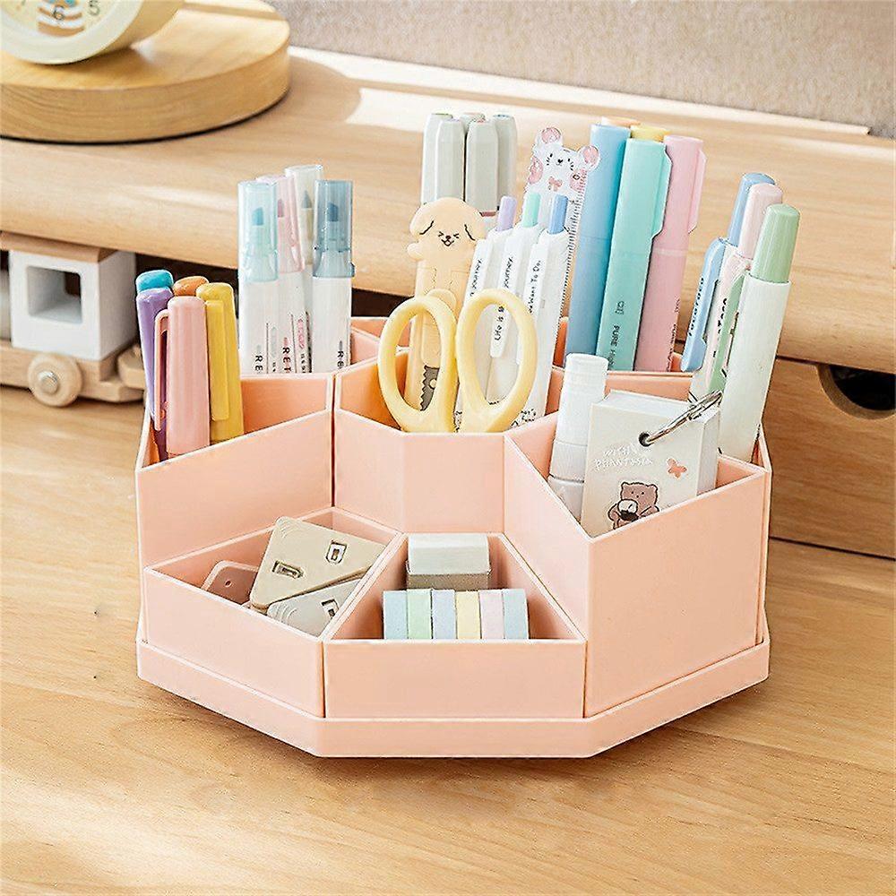 Pen holder rotates 360° with 9 slots and removable compartments for versatile organization